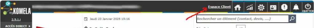Vous pouvez vous connecter directement depuis myKomela, en cliquant sur le lien « Espace client » en haut à droite de la barre des icônes. Vous serez alors directement dirigé vers l’espace client sans que votre mot de passe ne vous soit demandé.